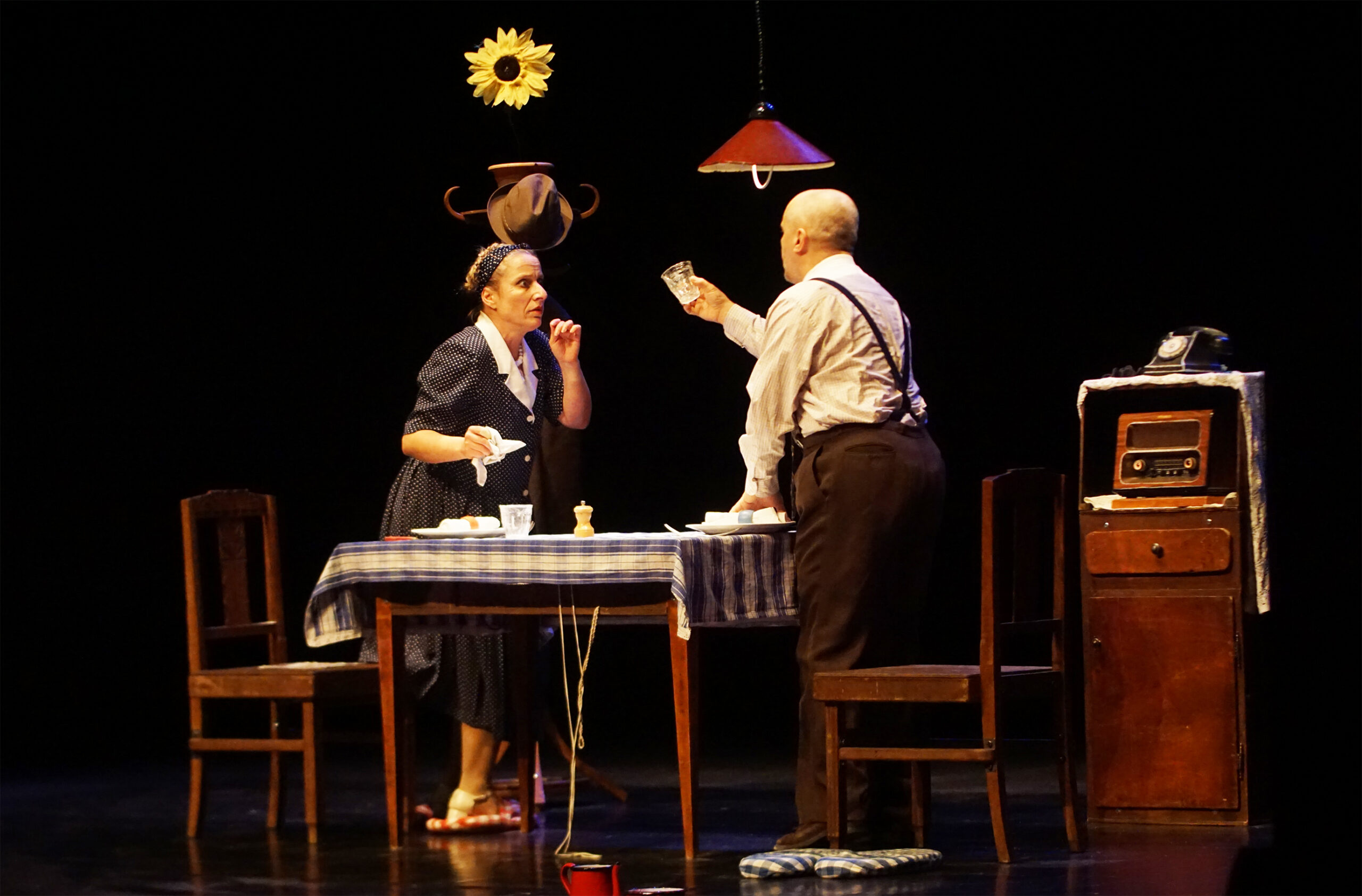 Violaine Clanet et Laurent Clairet de la Compagnie La Volga, qui ont ouvert la saison début mai, reviennent pour nous dépeindre, avec légèreté et gravité, sans échanger un mot, mais par gestes et par mimes, la vie d’un couple sans histoire qui a vieilli et, dont, après 40 ans de vie commune, la vie se réduit à une répétition immuable de gestes du quotidien. Cela donne des situations tantôt burlesques et loufoques, tantôt absurdes et exaspérantes, toujours sur un fond de tendresse, d’humour et d’espoir. Monsieur et Madame O a obtenu en 1998 le Prix du Public de la Tournée Océane et le 2ème Prix du Festival d’Humour de Longjumeau. En 2026, avec le vieillissement de la société, cette réflexion sur le poids des habitudes et des conventions est toujours et plus que jamais d’actualité.